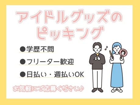 日払い・週払いOK!アイドルグッズのピッキング/学歴不問☆